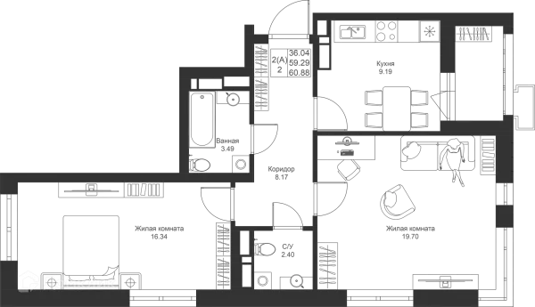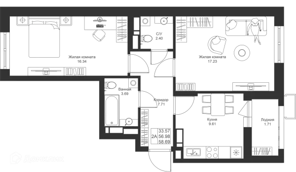 2 комн. квартира в Казане в ипотеку от 96 504 руб/месяц