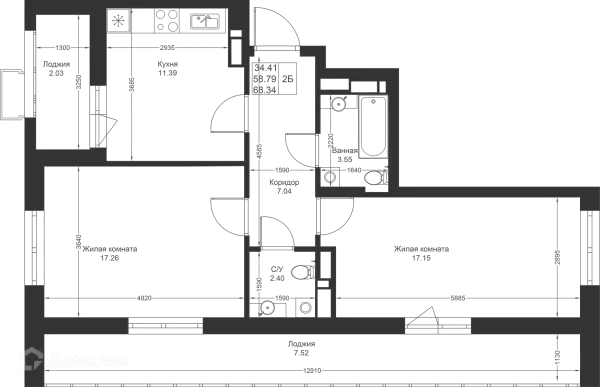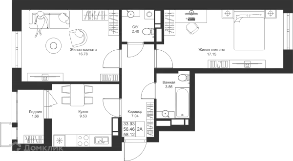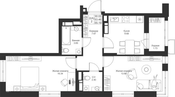 2 комн. квартира в Казане в ипотеку от 81 102 руб/месяц