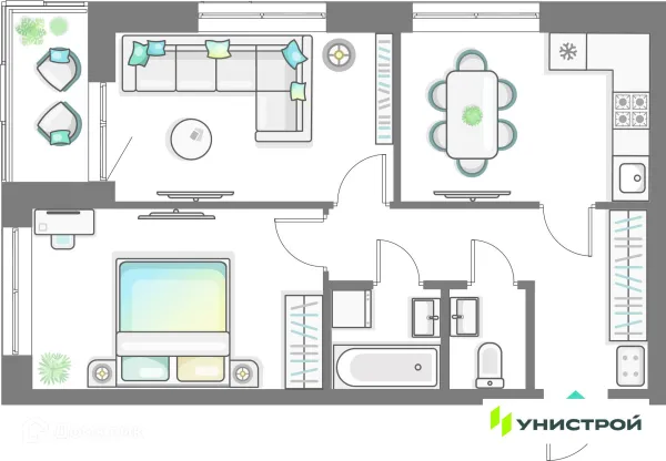 2 комн. квартира в Казане в ипотеку от 104 414 руб/месяц