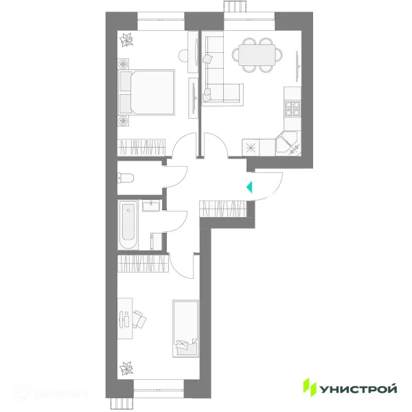 2 комн. квартира в Казане в ипотеку от 109 311 руб/месяц