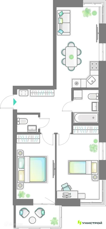 2 комн. квартира в Казане в ипотеку от 97 494 руб/месяц