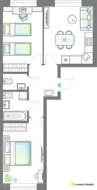 2 комн. квартира в Казане в ипотеку от 74 616 руб/месяц