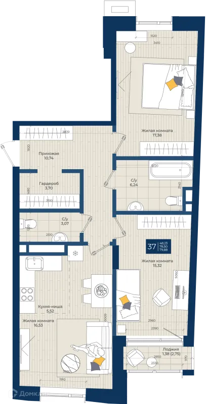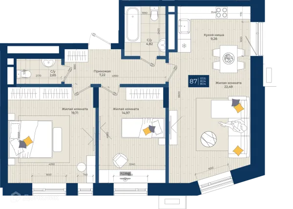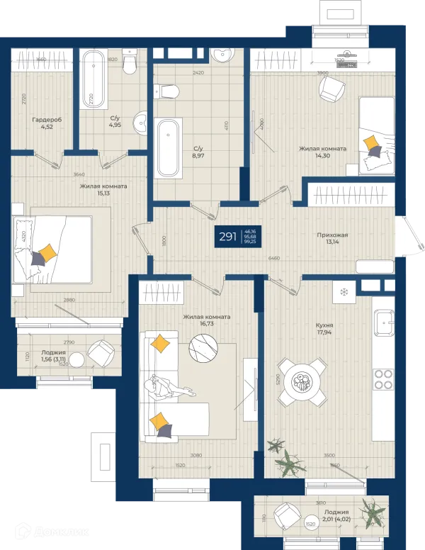 3 комн. квартира в Казане в ипотеку от 162 211 руб/месяц