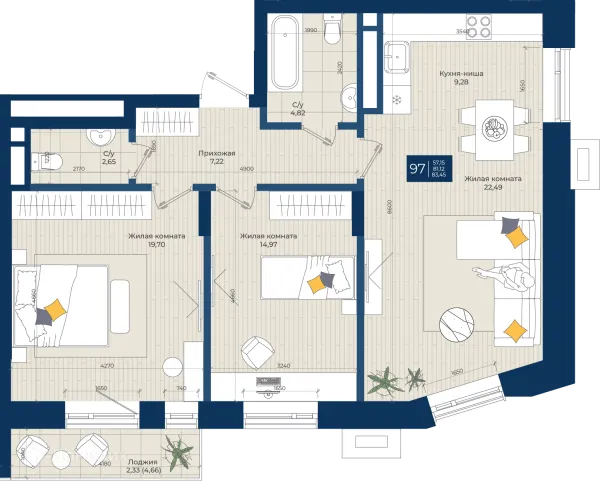 3 комн. квартира в Казане в ипотеку от 200 116 руб/месяц