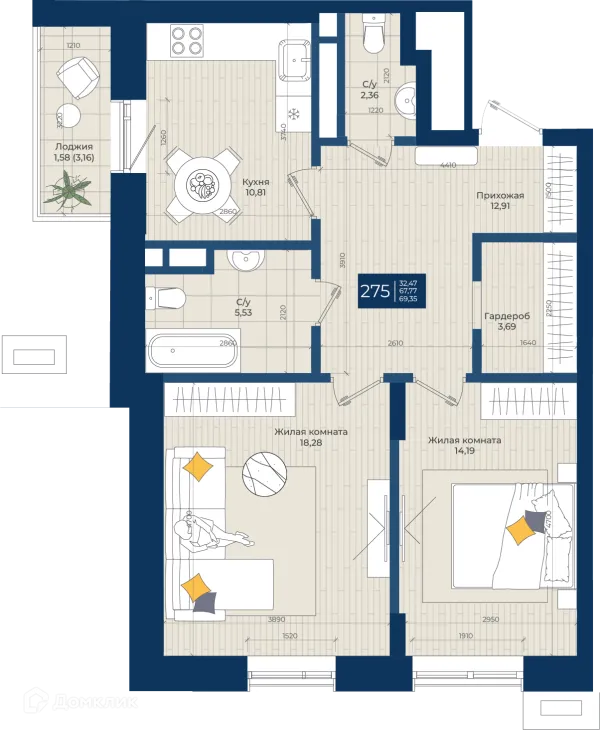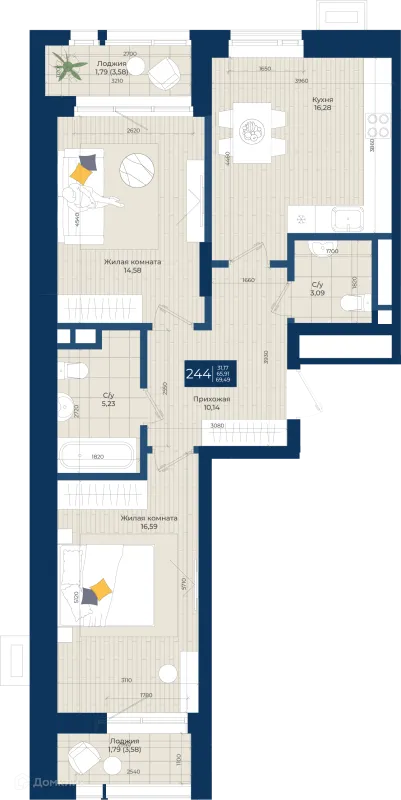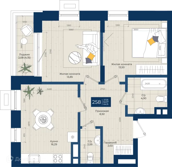 2 комн. квартира в Казане в ипотеку от 159 758 руб/месяц