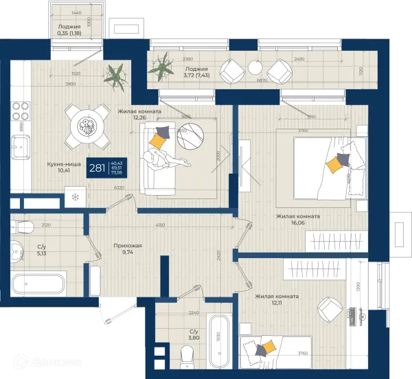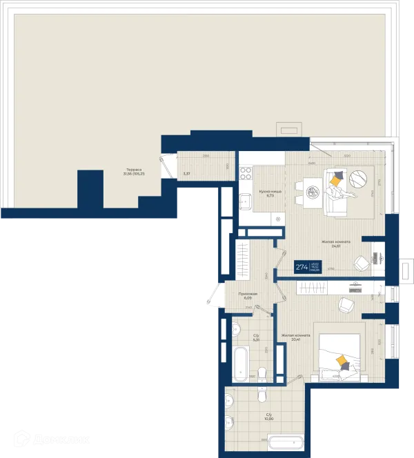3 комн. квартира в Казане в ипотеку от 274 947 руб/месяц