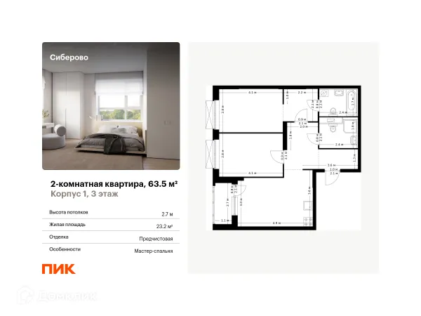 1 комн. квартира в Казане в ипотеку от 60 559 руб/месяц