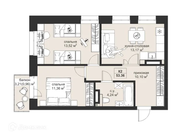 2 комн. квартира в Казане в ипотеку от 152 799 руб/месяц