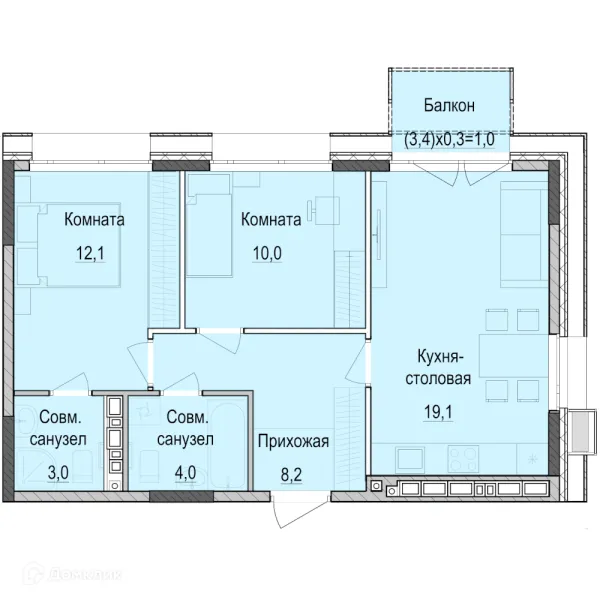 3 комн. квартира в Казане в ипотеку от 101 370 руб/месяц