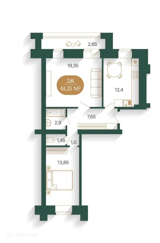 2 комн. квартира в Казане в ипотеку от 35 257 руб/месяц