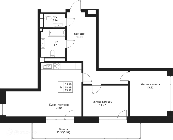 2 комн. квартира в Казане в ипотеку от 196 035 руб/месяц