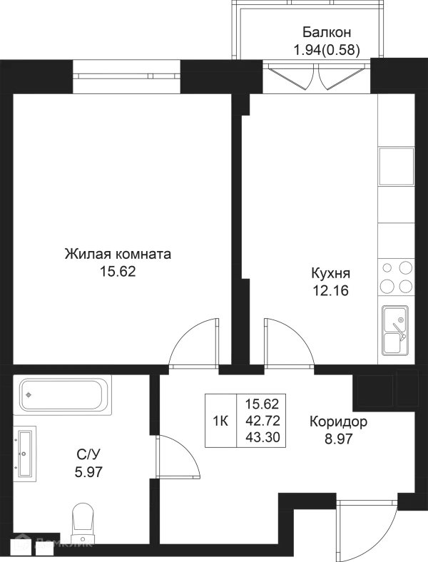 1 комн. квартира в Казане в ипотеку от 161 958 руб/месяц