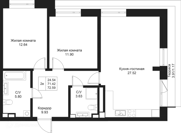 2 комн. квартира в Казане в ипотеку от 203 475 руб/месяц