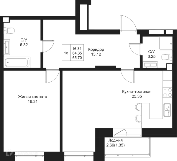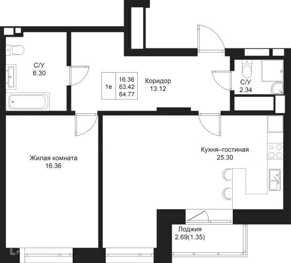 1 комн. квартира в Казане в ипотеку от 103 795 руб/месяц