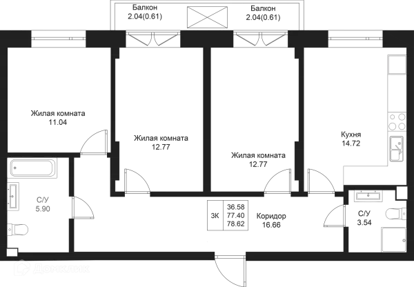 3 комн. квартира в Казане в ипотеку от 199 282 руб/месяц
