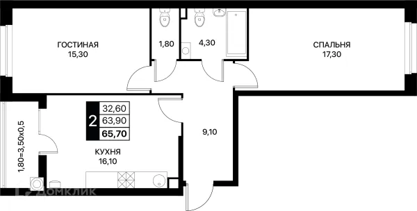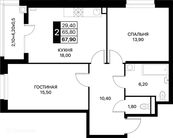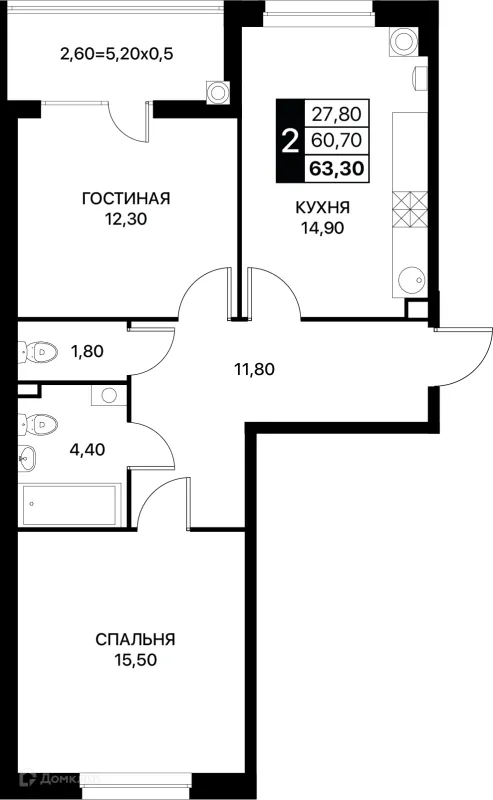 2 комн. квартира в Ростове-на-Дону в ипотеку от 63 215 руб/месяц