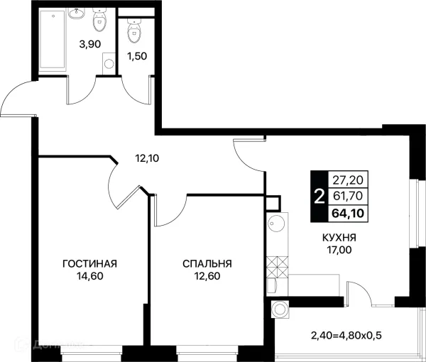 2 комн. квартира в Ростове-на-Дону в ипотеку от 60 037 руб/месяц