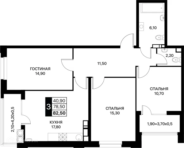 3 комн. квартира в Ростове-на-Дону в ипотеку от 69 478 руб/месяц