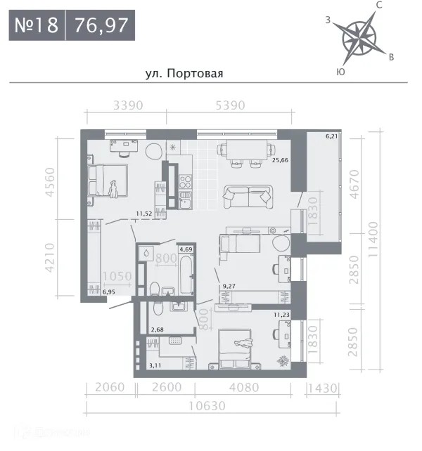 3 комн. квартира в Казане в ипотеку от 148 486 руб/месяц
