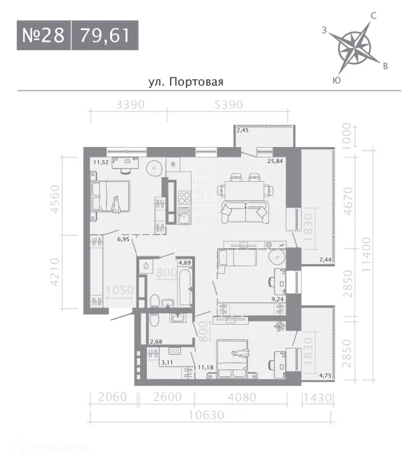 3 комн. квартира в Казане в ипотеку от 157 191 руб/месяц