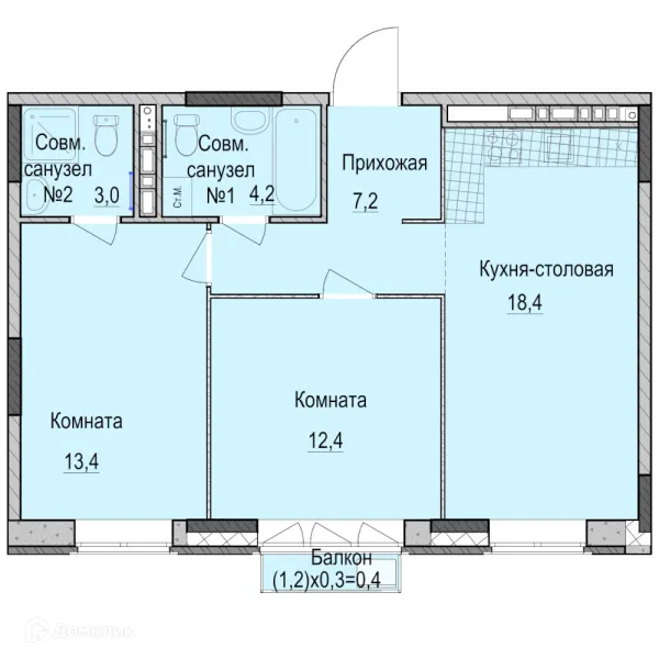 2 комн. квартира в Казане в ипотеку от 85 069 руб/месяц