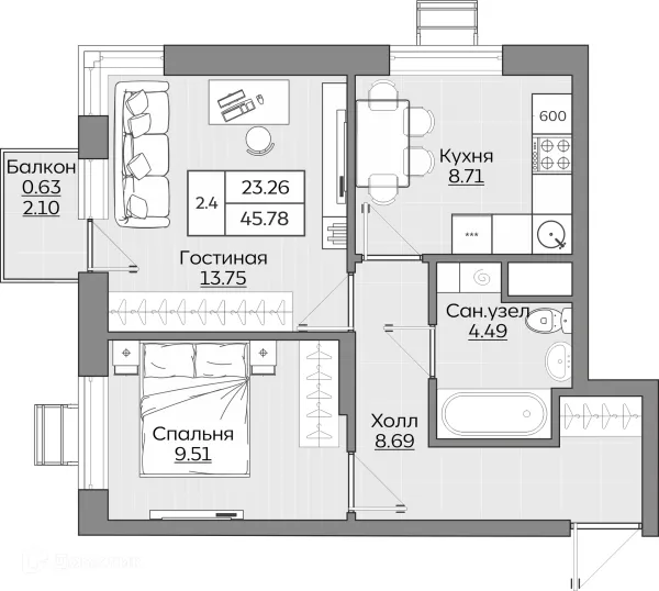2 комн. квартира в Казане в ипотеку от 63 124 руб/месяц