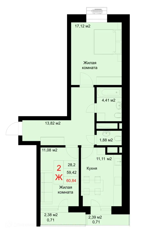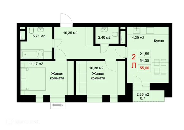 2 комн. квартира в Казане в ипотеку от 68 114 руб/месяц
