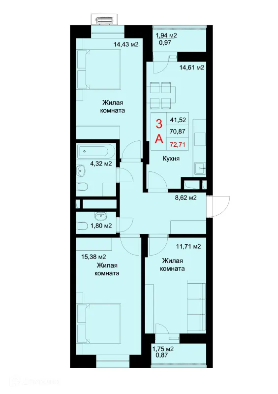 3 комн. квартира в Казане в ипотеку от 91 925 руб/месяц