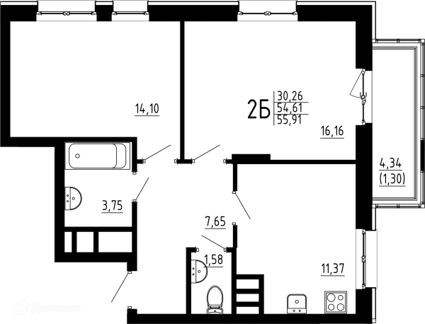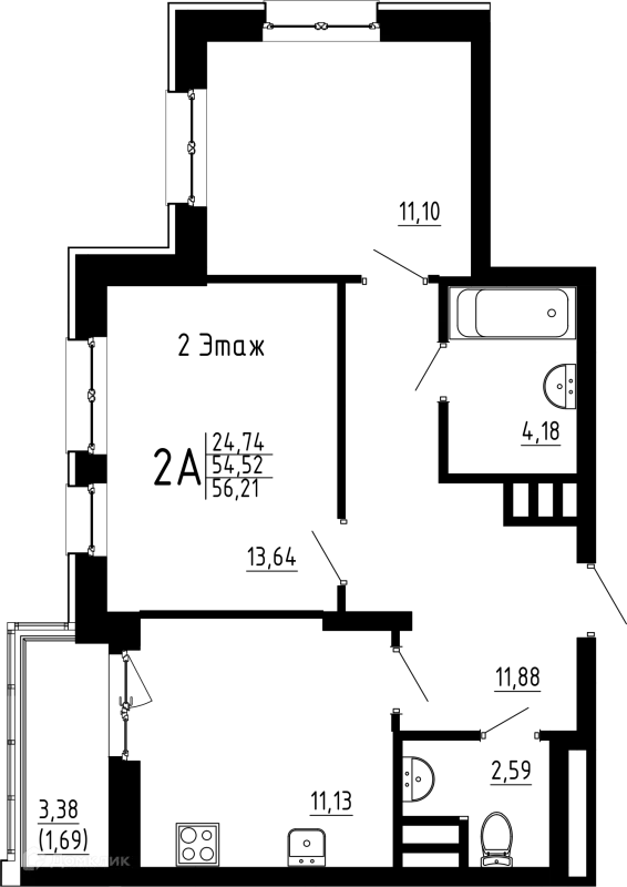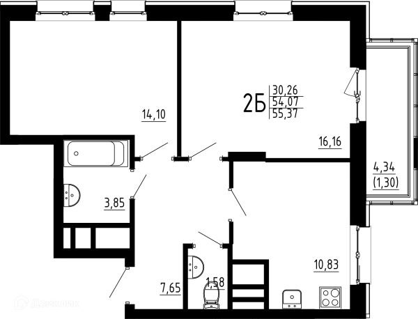 2 комн. квартира в Казане в ипотеку от 82 307 руб/месяц
