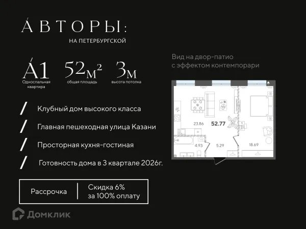 1 комн. квартира в Казане в ипотеку от 177 303 руб/месяц