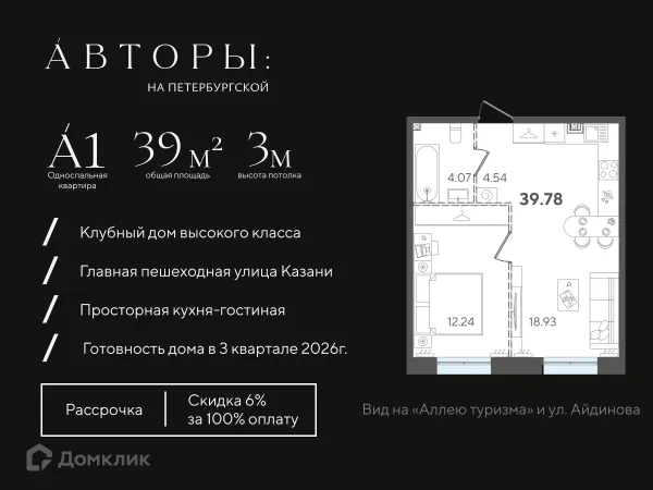 1 комн. квартира в Казане в ипотеку от 206 668 руб/месяц