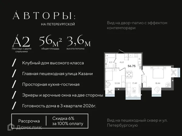 2 комн. квартира в Казане в ипотеку от 225 045 руб/месяц