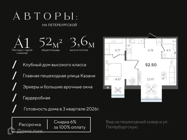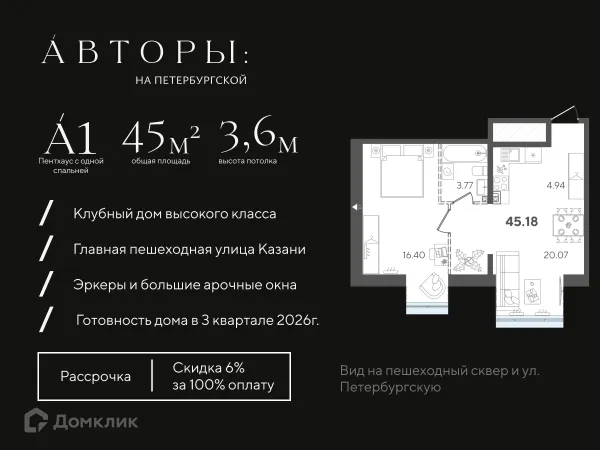 1 комн. квартира в Казане в ипотеку от 220 568 руб/месяц