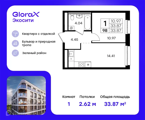 1 комн. квартира в Казане в ипотеку от 59 696 руб/месяц