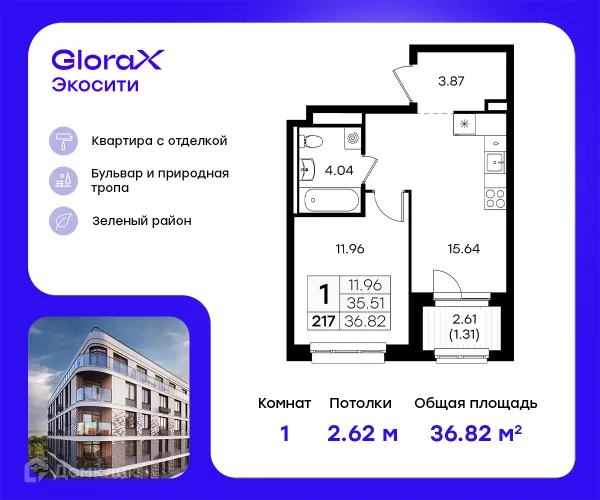 1 комн. квартира в Казане в ипотеку от 61 208 руб/месяц
