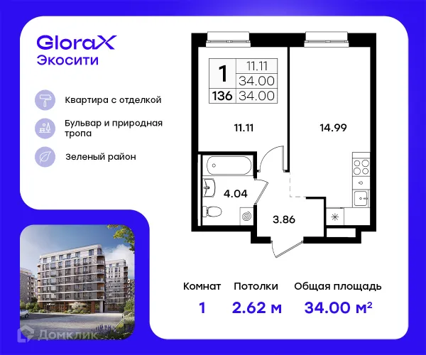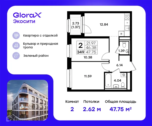 2 комн. квартира в Казане в ипотеку от 73 234 руб/месяц