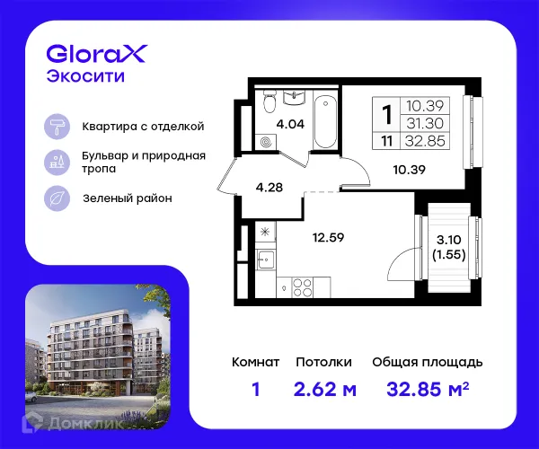1 комн. квартира в Казане в ипотеку от 54 943 руб/месяц