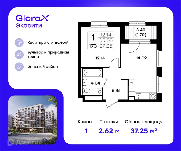 1 комн. квартира в Казане в ипотеку от 63 584 руб/месяц
