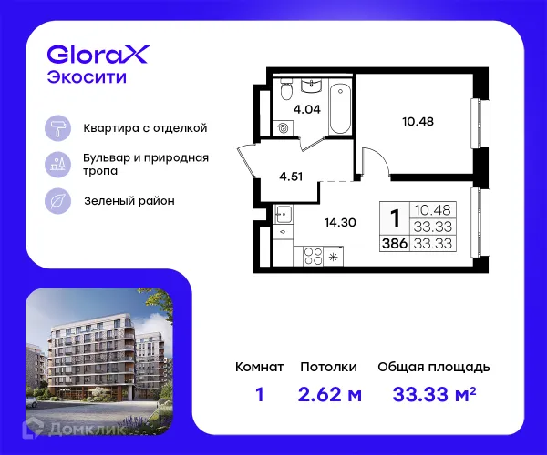 1 комн. квартира в Казане в ипотеку от 67 977 руб/месяц