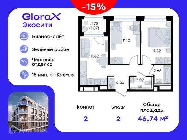 2 комн. квартира в Казане в ипотеку от 95 815 руб/месяц