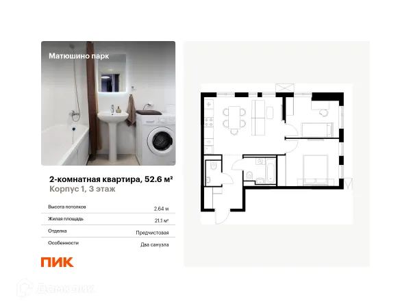 2 комн. квартира в Казане в ипотеку от 55 269 руб/месяц