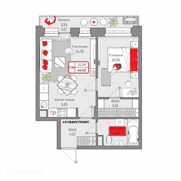 2 комн. квартира в Казане в ипотеку от 63 520 руб/месяц