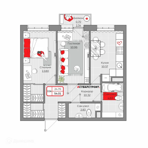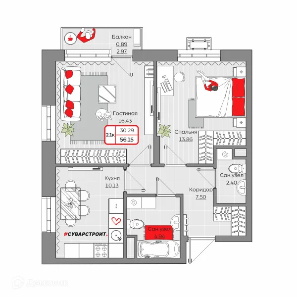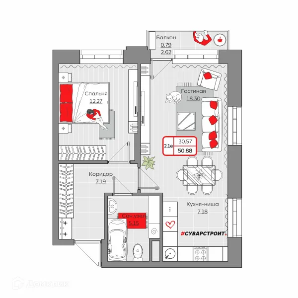 2 комн. квартира в Казане в ипотеку от 80 089 руб/месяц