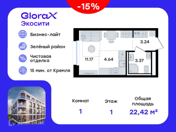 Студия квартира в Казане в ипотеку от 43 422 руб/месяц