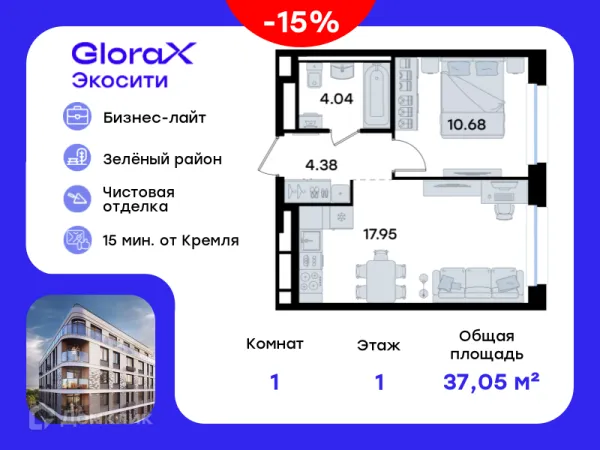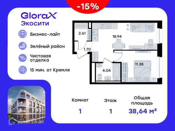 1 комн. квартира в Казане в ипотеку от 64 737 руб/месяц