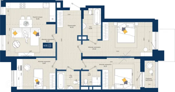 4 комн. квартира в Казане в ипотеку от 120 213 руб/месяц