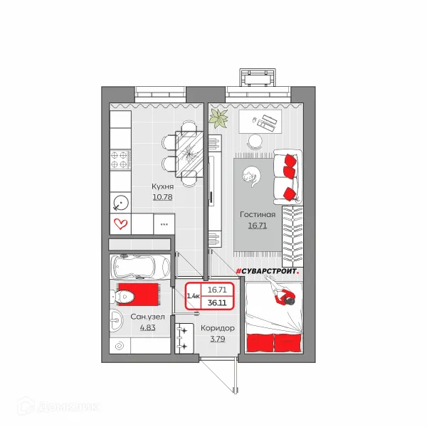 1 комн. квартира в Казане в ипотеку от 54 230 руб/месяц