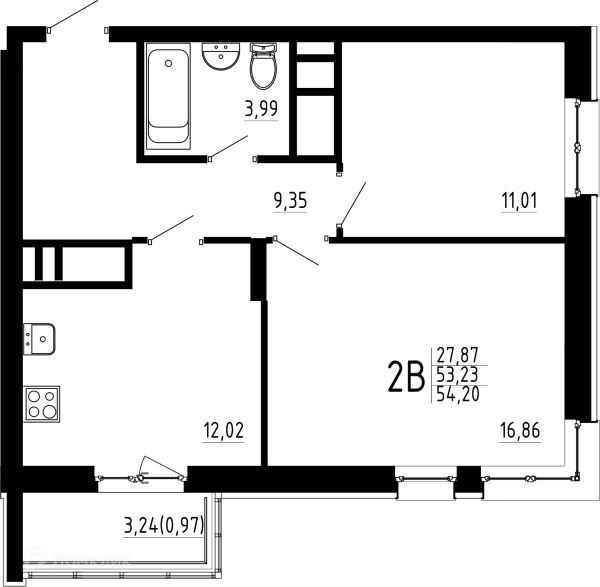 2 комн. квартира в Казане в ипотеку от 64 103 руб/месяц
