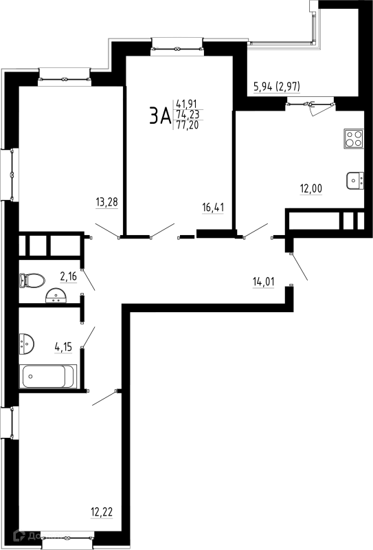 3 комн. квартира в Казане в ипотеку от 77 367 руб/месяц