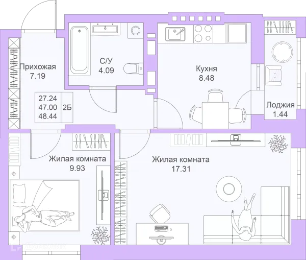 2 комн. квартира в Казане в ипотеку от 83 044 руб/месяц